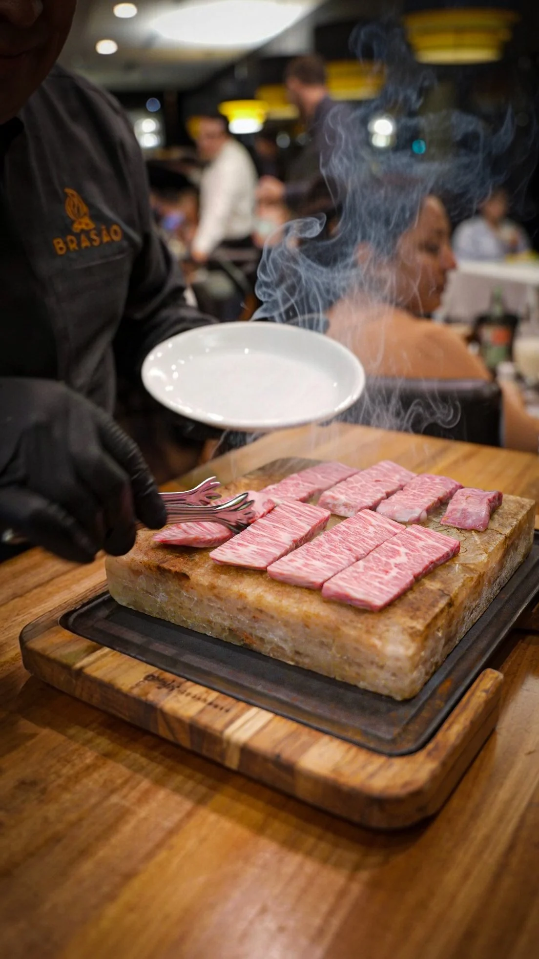 At Brasão Brazilian Steakhouse, we bring the centuries-old tradition of Southern Brazilian Churrasco to the heart of Texas. Our experience is centered around the Rodízio style of service, where our expertly trained Gaucho chefs prepare 17 premium cuts including USDA Prime meats over an open flame using traditional charcoal-grilling techniques. From our signature Picanha to succulent lamb chops and tender filet mignon wrapped in bacon, every cut is served table-side to your exact preference.
