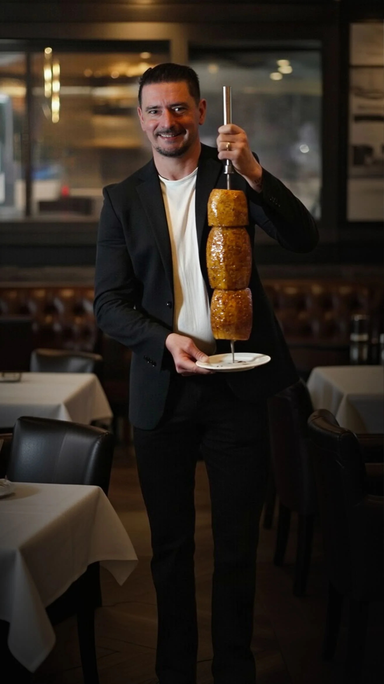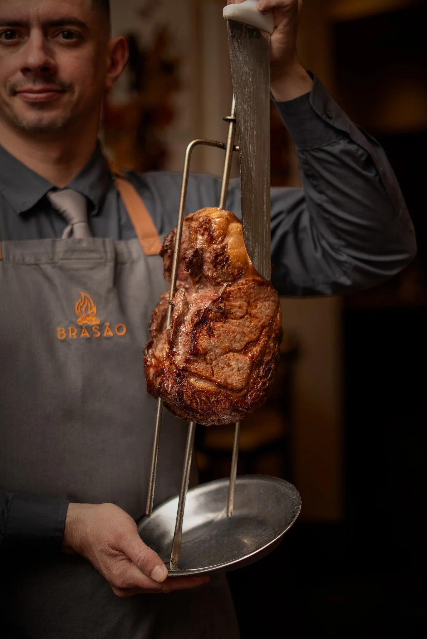At Brasão Brazilian Steakhouse, we bring the centuries-old tradition of Southern Brazilian Churrasco to the heart of Texas. Our experience is centered around the Rodízio style of service, where our expertly trained Gaucho chefs prepare 17 premium cuts including USDA Prime meats over an open flame using traditional charcoal-grilling techniques. From our signature Picanha to succulent lamb chops and tender filet mignon wrapped in bacon, every cut is served table-side to your exact preference.