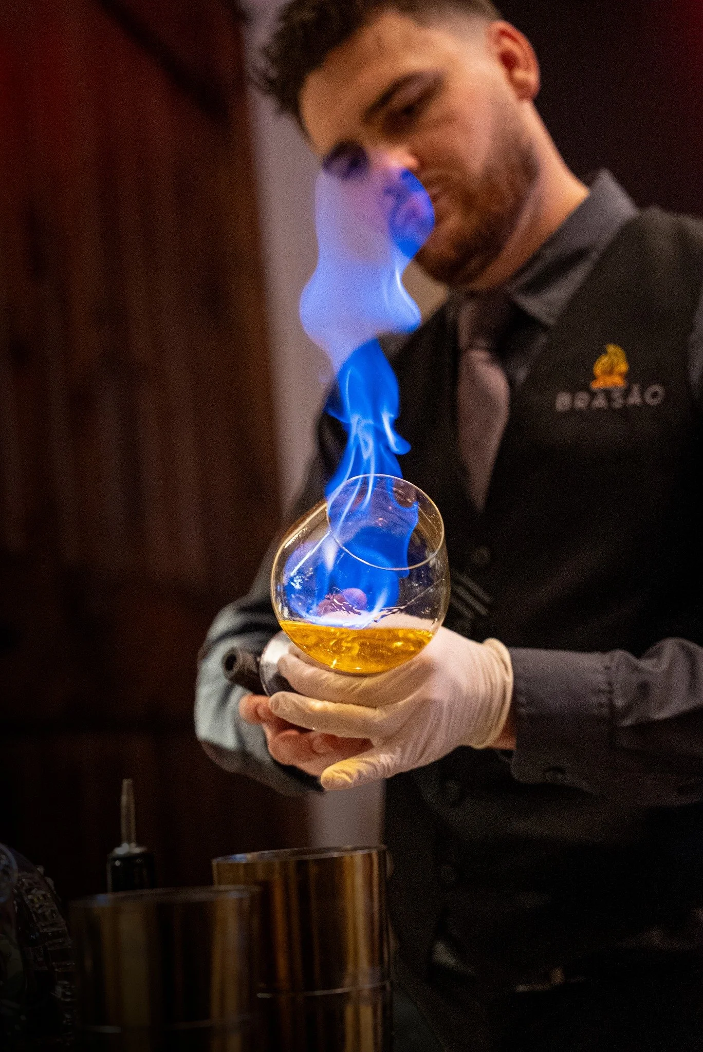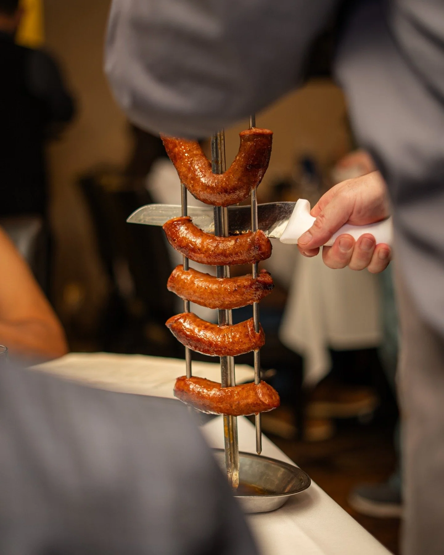 At Brasão Brazilian Steakhouse, we bring the centuries-old tradition of Southern Brazilian Churrasco to the heart of Texas. Our experience is centered around the Rodízio style of service, where our expertly trained Gaucho chefs prepare 17 premium cuts including USDA Prime meats over an open flame using traditional charcoal-grilling techniques. From our signature Picanha to succulent lamb chops and tender filet mignon wrapped in bacon, every cut is served table-side to your exact preference.